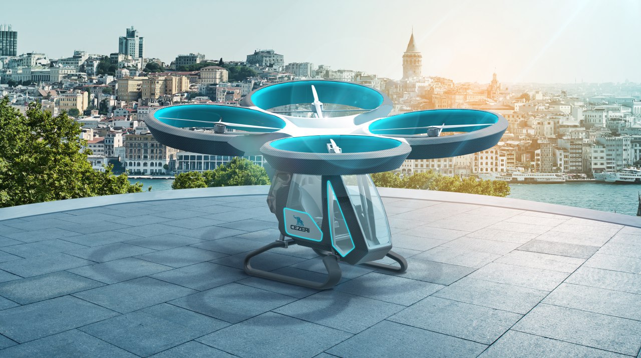 - Cezeri Uçan Araba 8 adet BLDC motor ve pervane çiftinden oluşan, üstten pervaneli, tek koltuklu, döner kanatlı bir hava aracıdır.